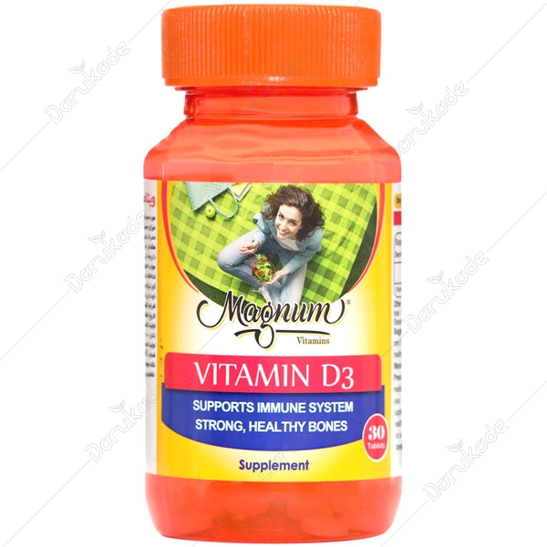 ویتامین د3 مگنوم ویتامینز از جمله مکمل های تغذیه ای حاوی ویتامین D است که به ازای هر قرص حاوی 50 میکروگرم (معادل 2000 واحد بین المللی) ویتامین D است. این ویتامین از طریق بهبود جذب فسفر و کلسیم، در حفظ تراکم استخوان ها و پیشگیری از ابتلا به پوکی استخوان موثر است.